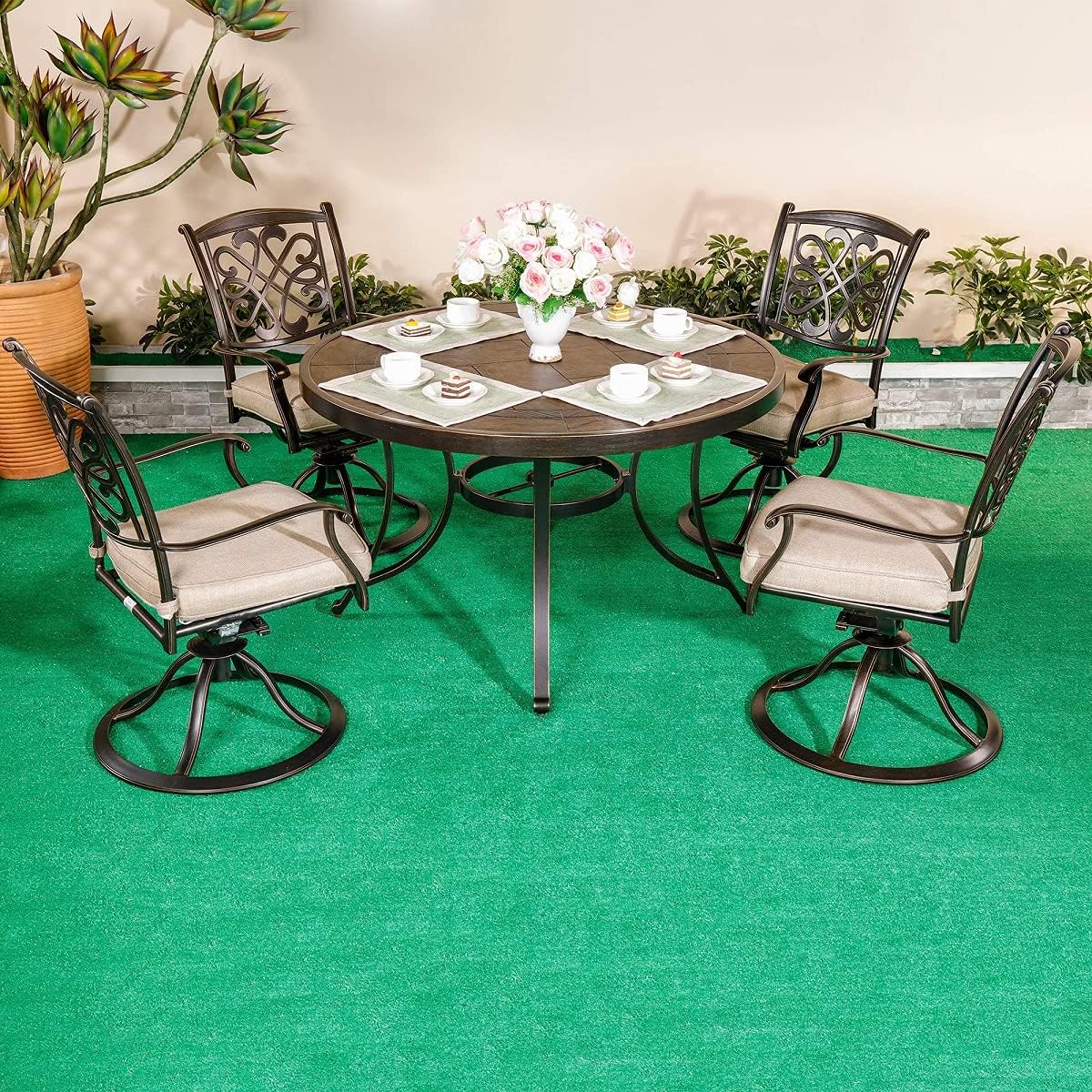 La casa cafe slate grey 48 in. Round outdoor dining table and 4 swivel chairs. See full list on homedepot.com Aug 06, 2019 · product overview. The slat top design is attractive and fits into any design scene.